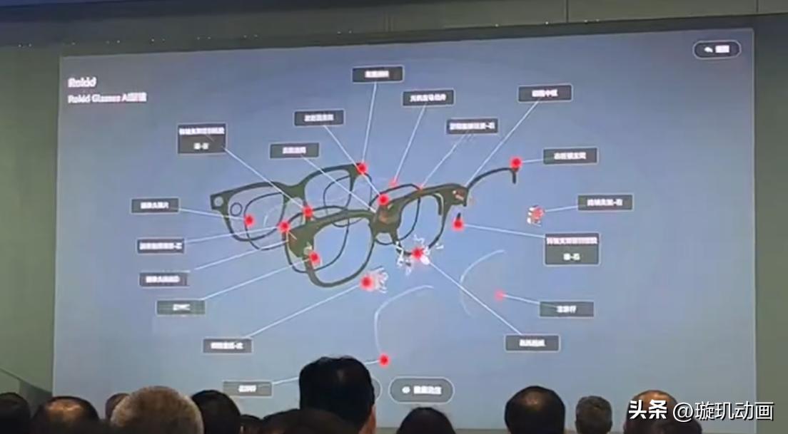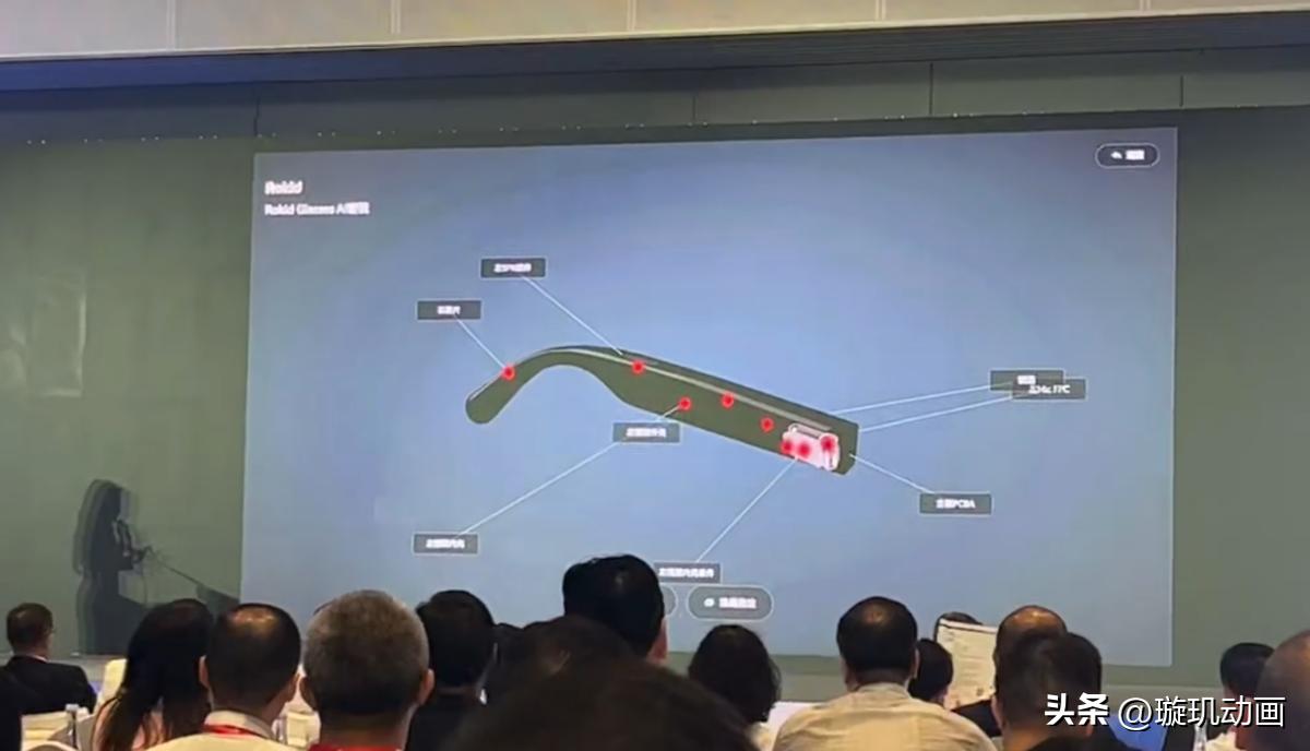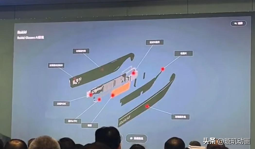 以消费级AI智能眼镜Rokid Glasses为例,璇玑动画通过高精度3D建模,生动解析了其单色光波导显示技术、长效续航硬件设计,以及Wifi、导航、拍摄、音乐、助盲等多功能互联特性。3D视觉呈现不仅凸显了产品技术优势,更让观众一目了然地理解其如何重新定义智能眼镜的应用场景。