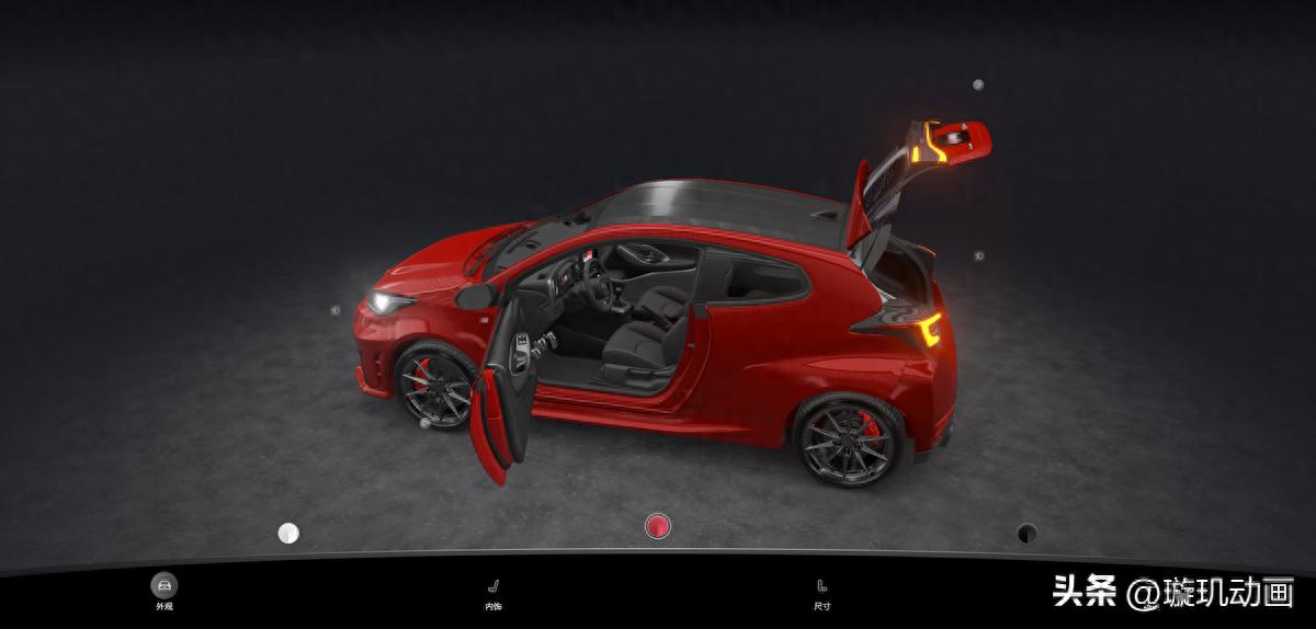 比如璇玑动画做汽车 Web3D 项目时,会在渲染上花很多功夫:一方面用 “物理渲染技术”,让车漆在阳光下和阴影里的反光效果和实车一致;另一方面还要做 “光影优化”,比如用户旋转车身时,车轮的阴影会跟着角度实时变化,不会出现 “影子和车身对不上” 的尴尬。