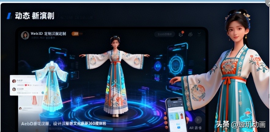 更吸引人的是,Web3D为“分享文化”提供了一个崭新的平台。在社交平台、小红书和抖音等社交平台,定制人们可以将自己定制的汉服分享在媒体平台上,只要点击一下,就可以看到一段动态的演示视频或者 AR图片。每个订做的人都是一种文化的传播者。每一个设计,都在诠释着美,也是中国传统文化的传承。