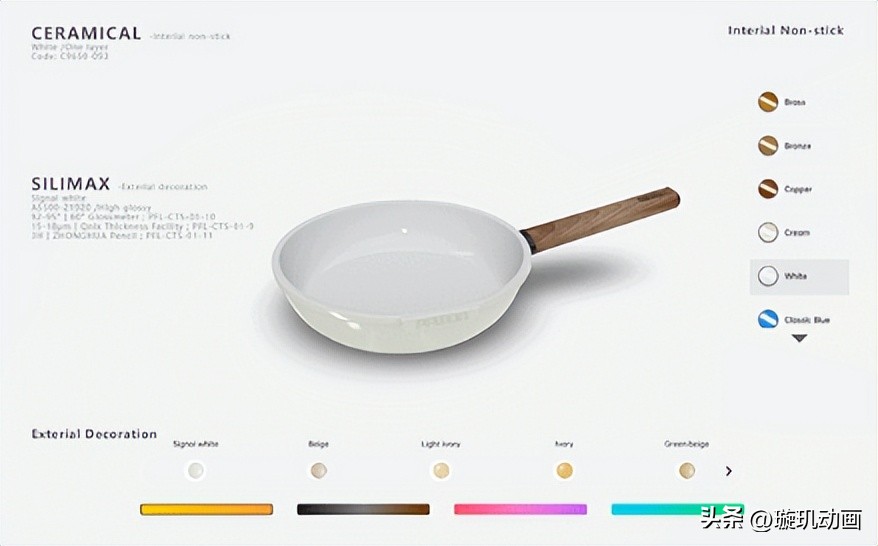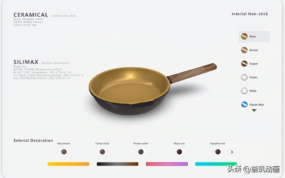 与传统的照片和视频相比,它最大的区别就是它的“真实感”。Web3D并非单纯地更换一个色彩贴图,而是通过对材质、光照、结构等进行逼真地仿真,使各种涂层在金属表面上呈现出精细的反光和分层。以往只有在样品中观察到的细微差别,如亮面、磨砂面、细砂、金属颗粒等,都可以通过屏幕直接感受到。